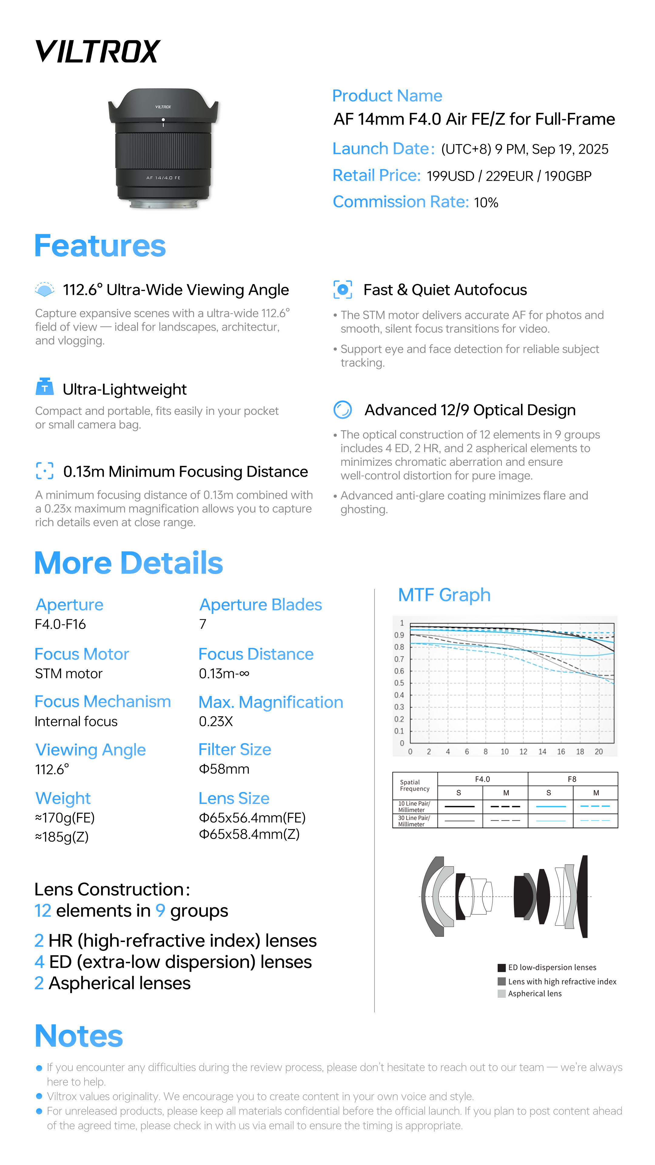 Viltrox AF 14mm F4.0 Air Full Frame Lens